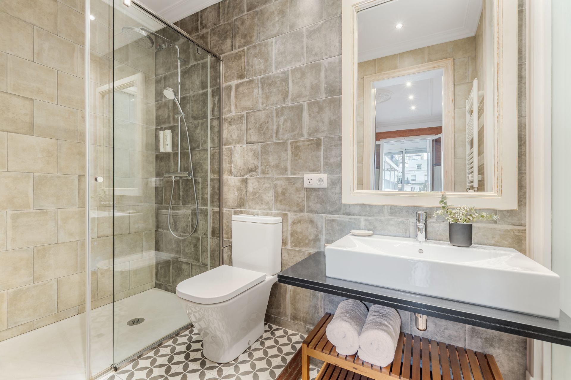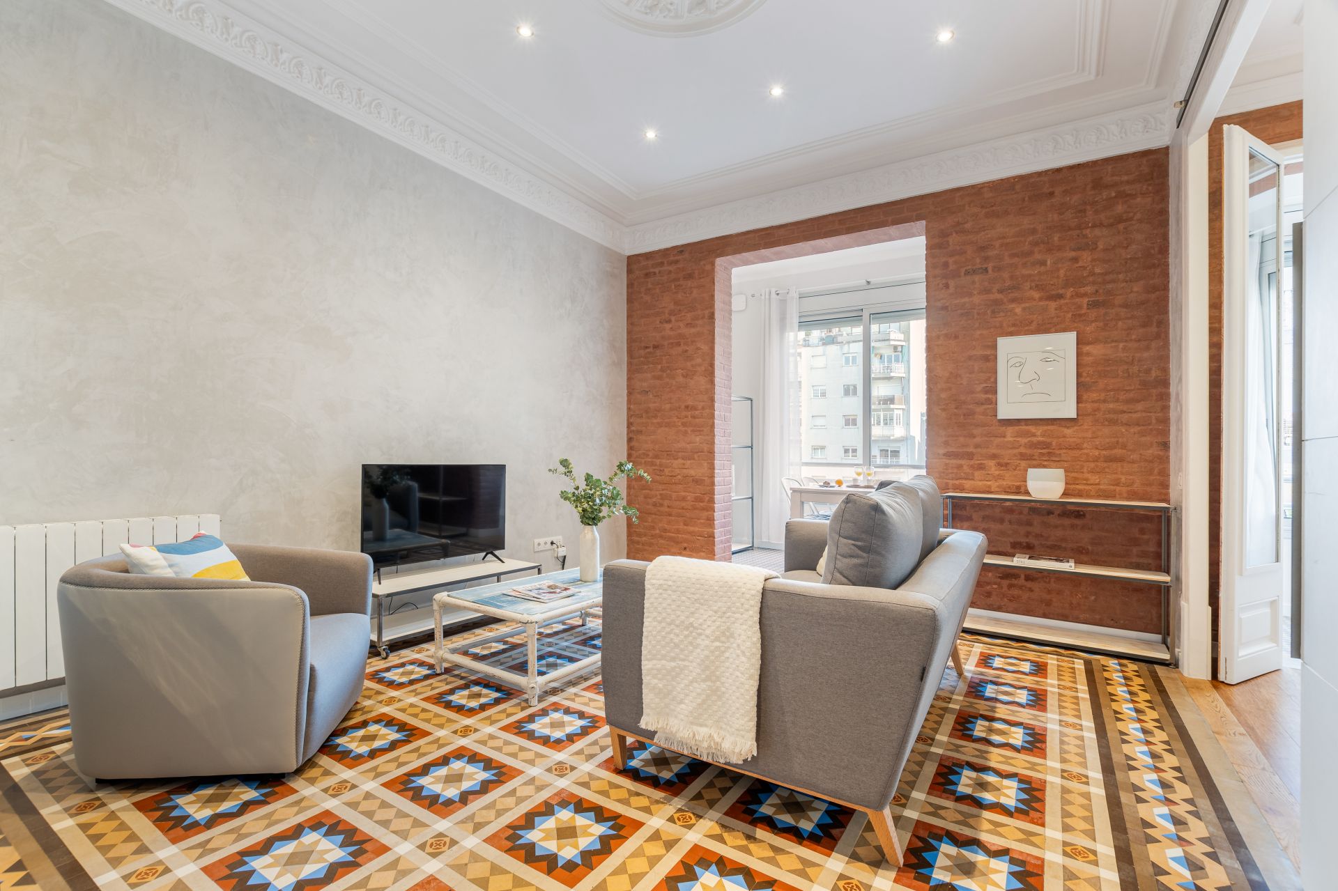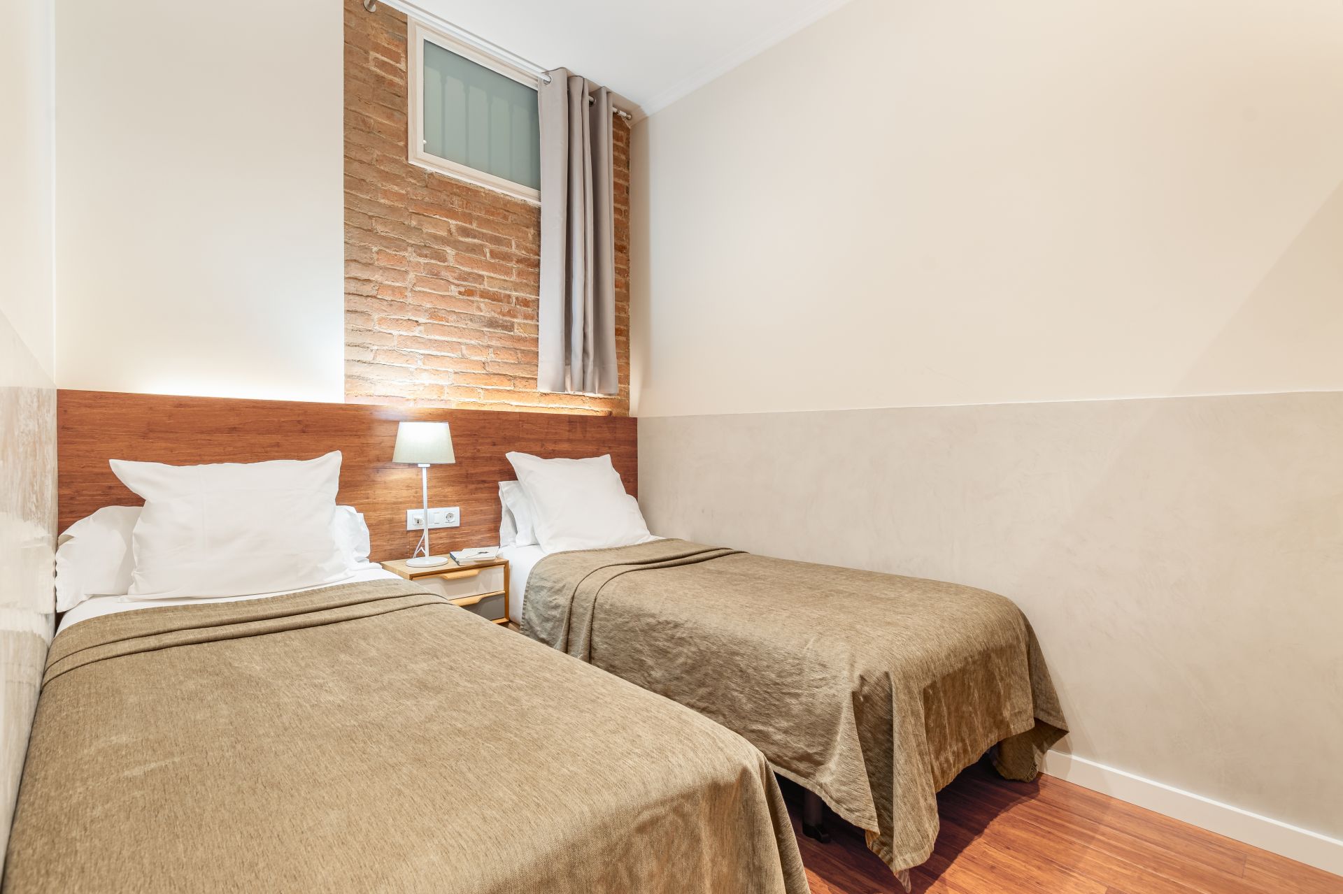 Amplios apartamentos en barcelona centro de 80 m2, con dos dormitorios y dos baños, ideal para un grupo de cuatro personas. Uno de los dormitorios tiene una cama doble, el otro dispone de dos camas individuales. El apartamento tiene un espacioso salón y un comedor. La cocina está completamente equipada. Los cuartos de baño disponen de duchas modernas. Disfruta de tu estancia en Fuster Apartments, el mejor sitio para relajarse y explorar Barcelona.