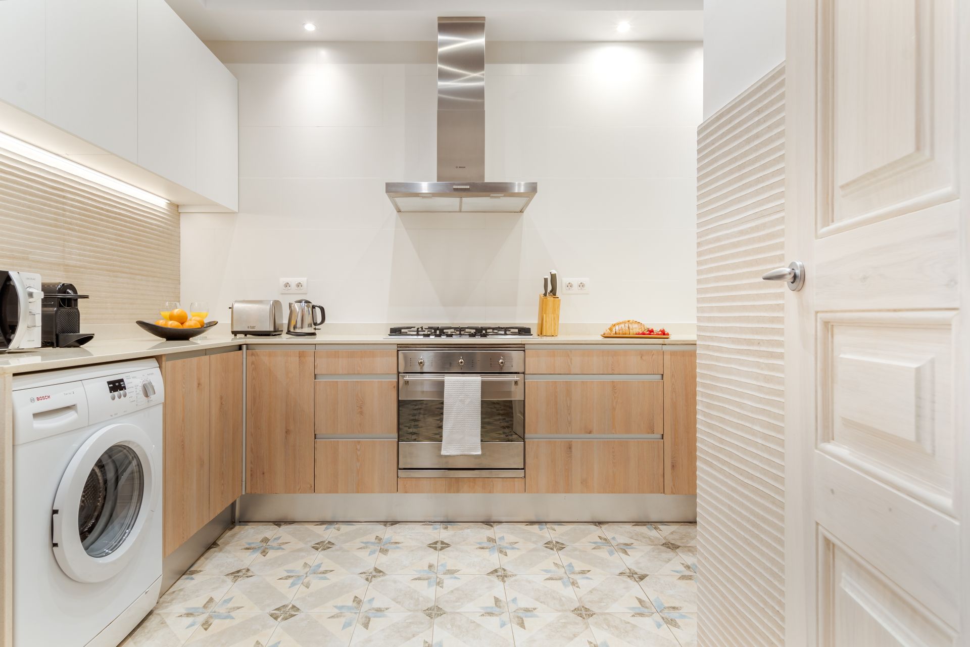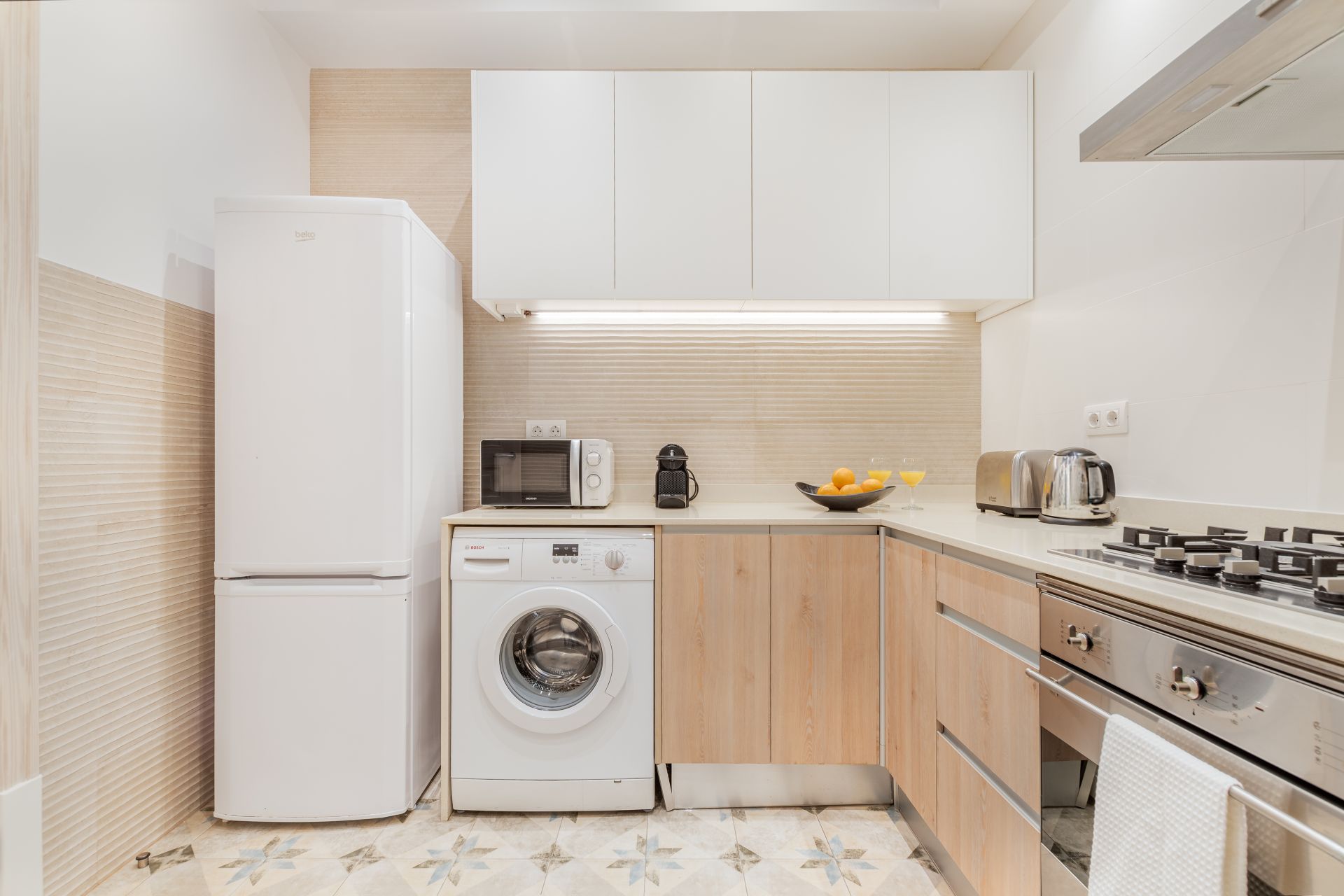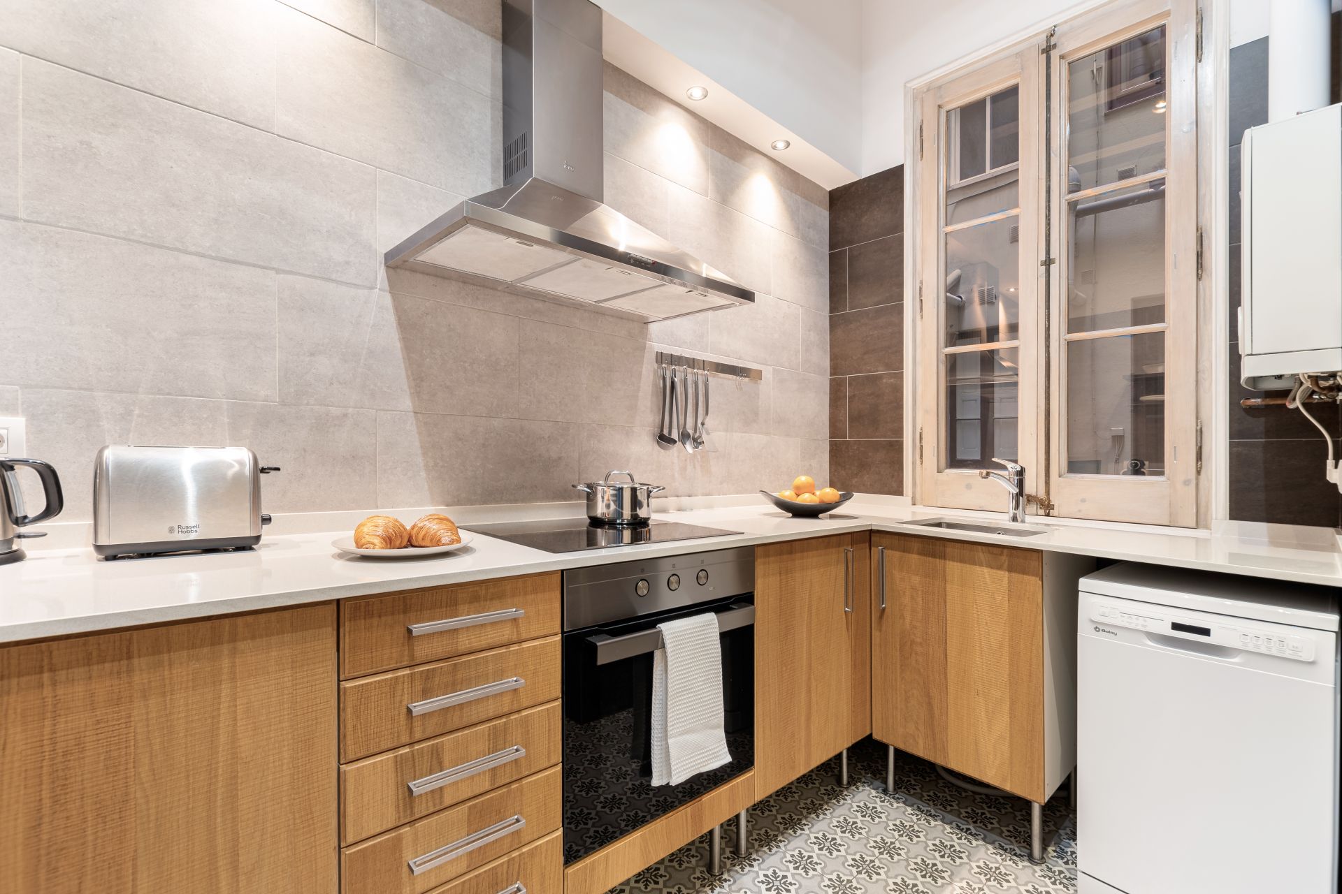 Amplios apartamentos en barcelona centro de 80 m2, con dos dormitorios y dos baños, ideal para un grupo de cuatro personas. Uno de los dormitorios tiene una cama doble, el otro dispone de dos camas individuales. El apartamento tiene un espacioso salón y un comedor. La cocina está completamente equipada. Los cuartos de baño disponen de duchas modernas. Disfruta de tu estancia en Fuster Apartments, el mejor sitio para relajarse y explorar Barcelona.